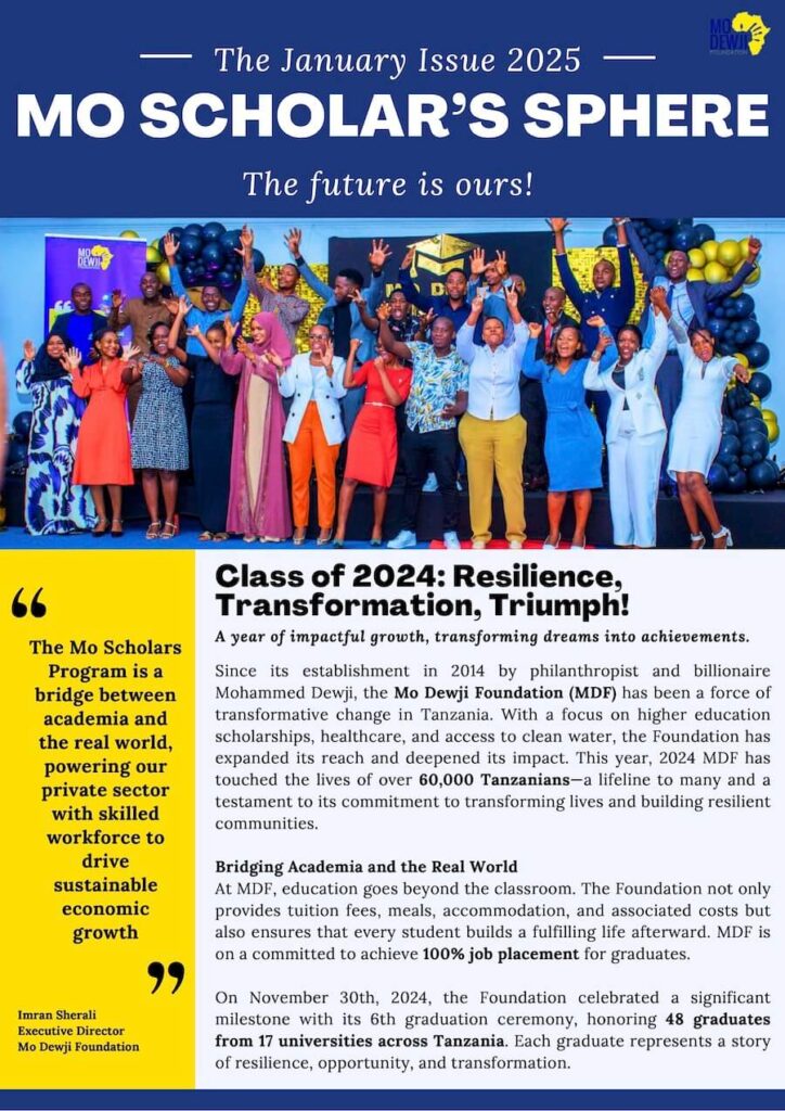 On November 30th, 2024, the Mo Dewji Foundation celebrated a significant milestone with its 6th graduation ceremony, honoring 48 graduates from 17 universities across Tanzania. Each graduate represents a story of resilience, opportunity, and transformation. For details on this, student profiles and other news from MDF, check out our January 2025 edition of Scholars Sphere newsletter!